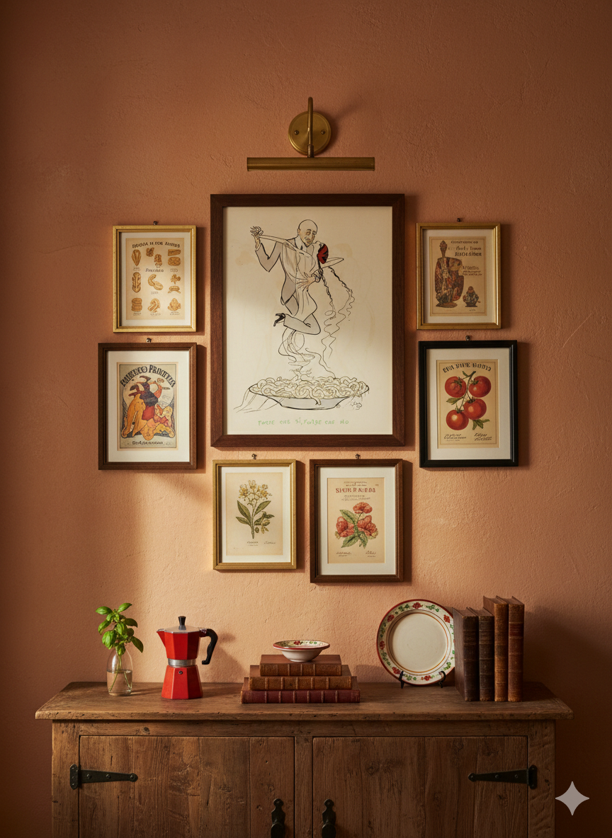 The minimalist yet expressive line work and the clever use of the "pasta steam" to form the dancers make this a standout piece of art. It’s an ideal addition to a kitchen, dining room, or any space where good food and good company are celebrated.
