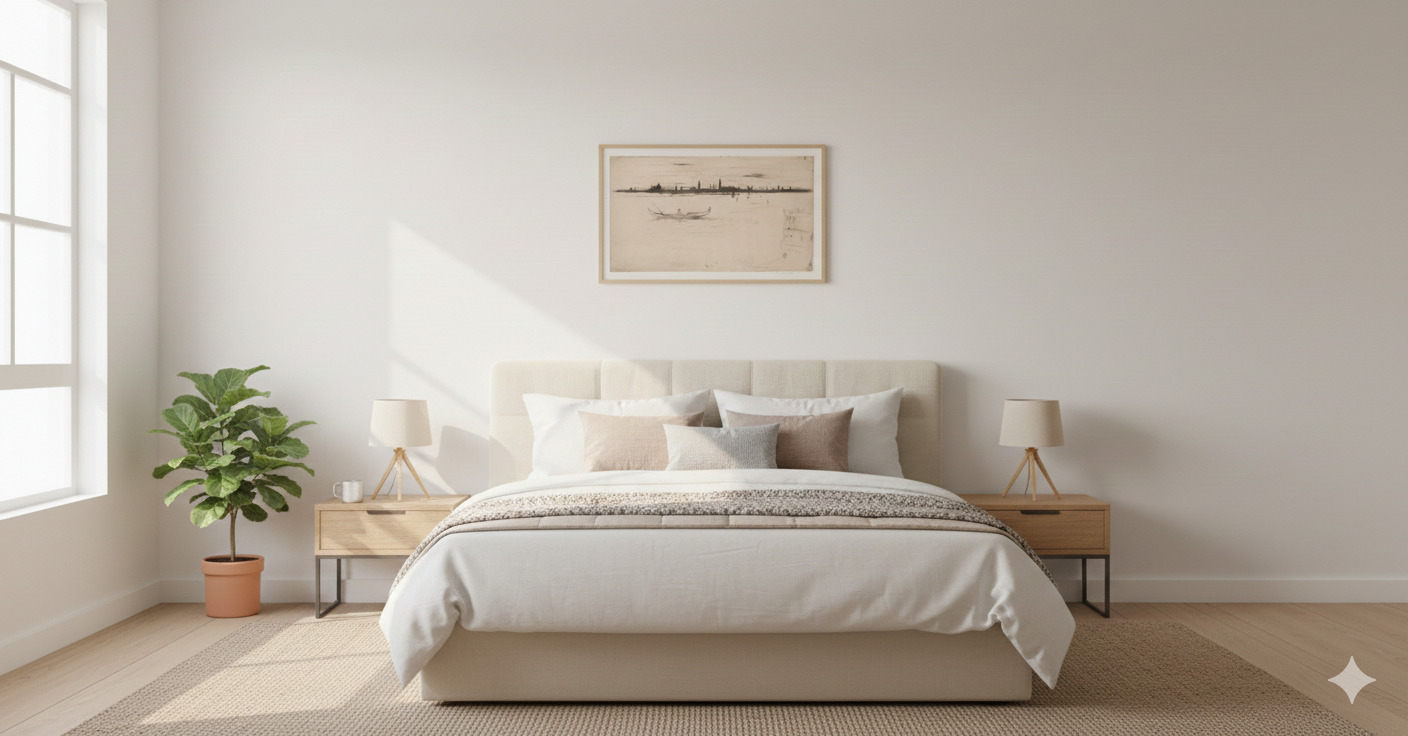 The vast sense of space and the gentle play of light over the water create a mood of profound peace. It is a sophisticated, quiet piece of art that brings a touch of old-world Venetian elegance to a bedroom, study, or a sun-drenched hallway.